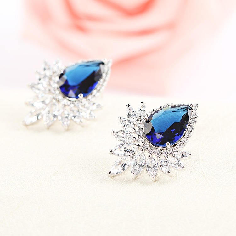 • Design: Teardrop shape with colorful rhinestones and zircon accents